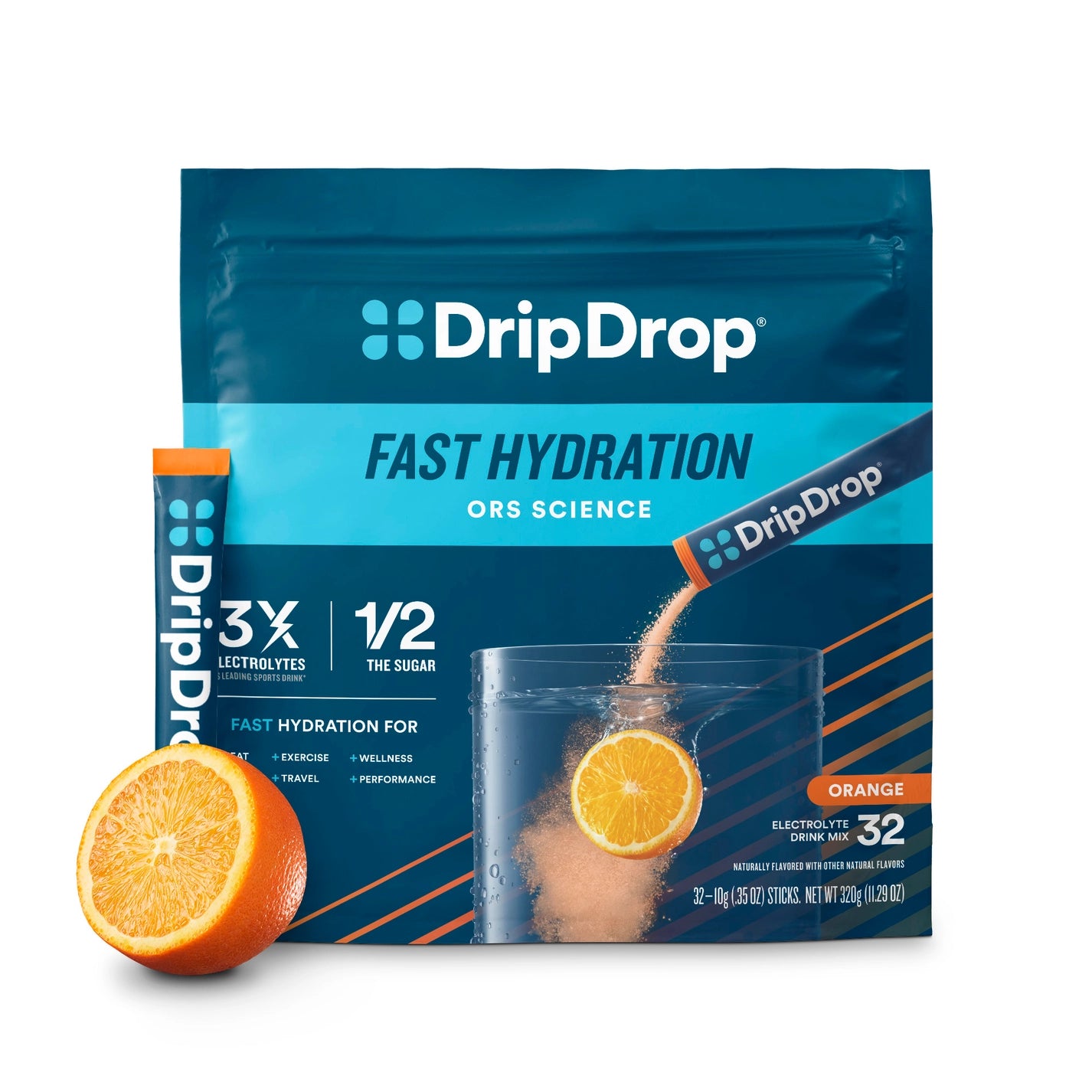 DripDrop Electrolyte Powder Packets - Orange 32 Count