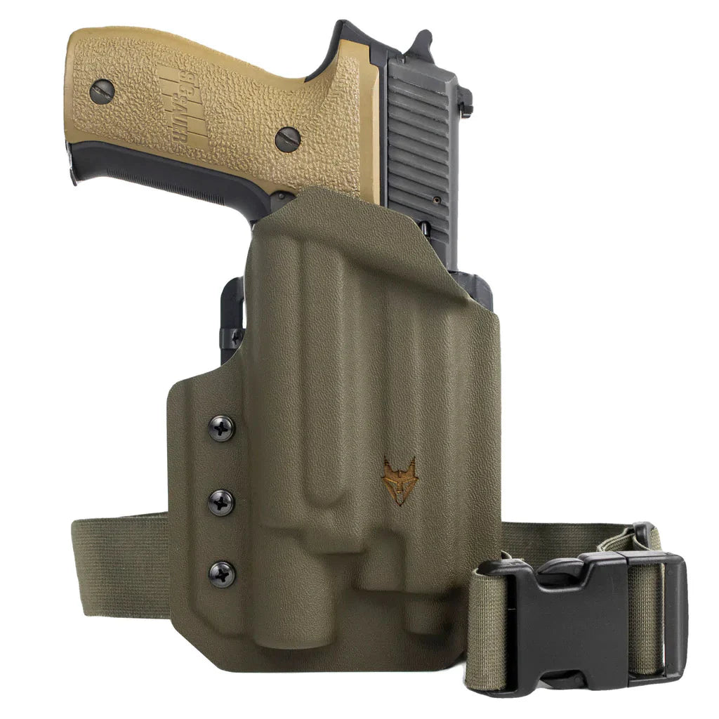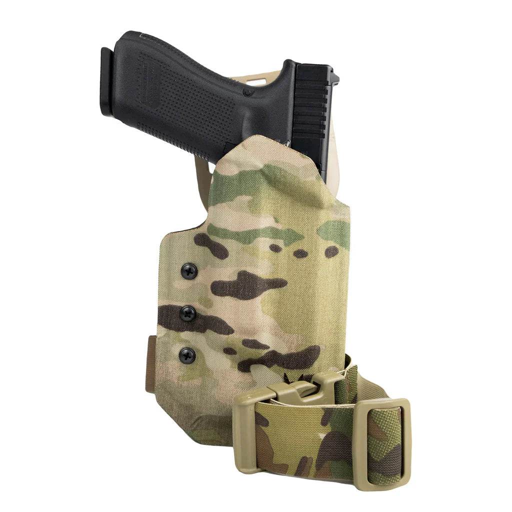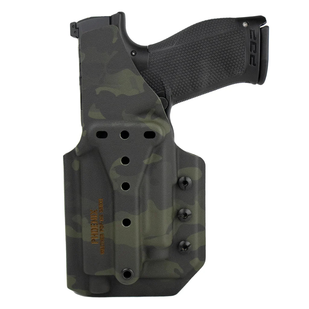 GrayFoxStrategic's flagship line of outside the waistband (OWB) holsters, the Pheonix comes with the ability to accept pistols with optics, upgraded sights as well as extended barrels and flashlights. All GrayFox Strategic holsters come standard with an adjustable retention point so you can set the retention just right.