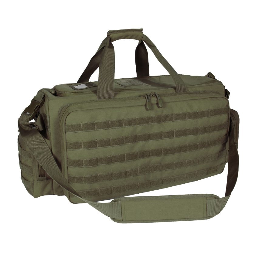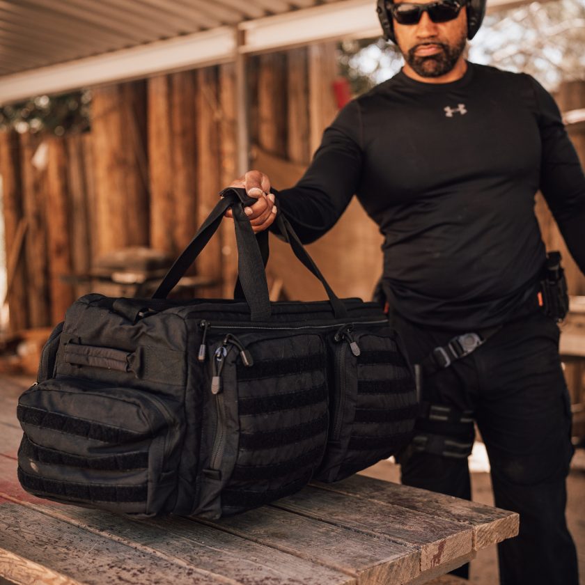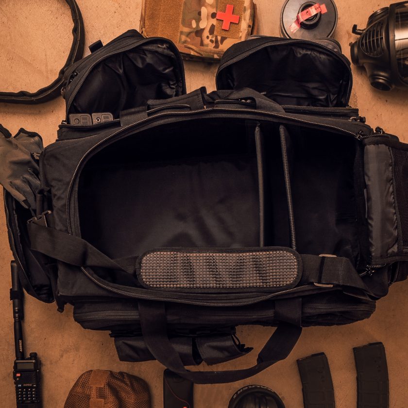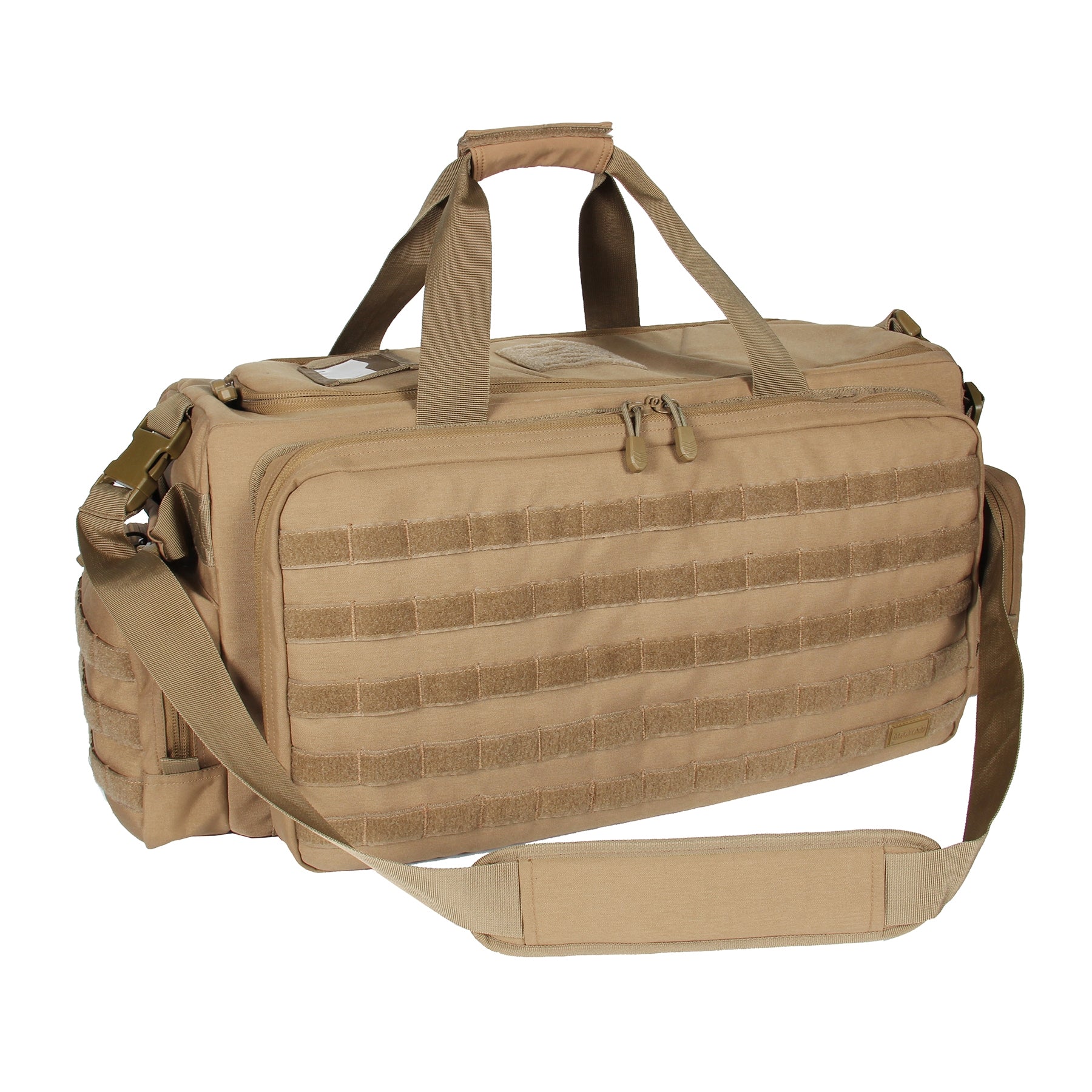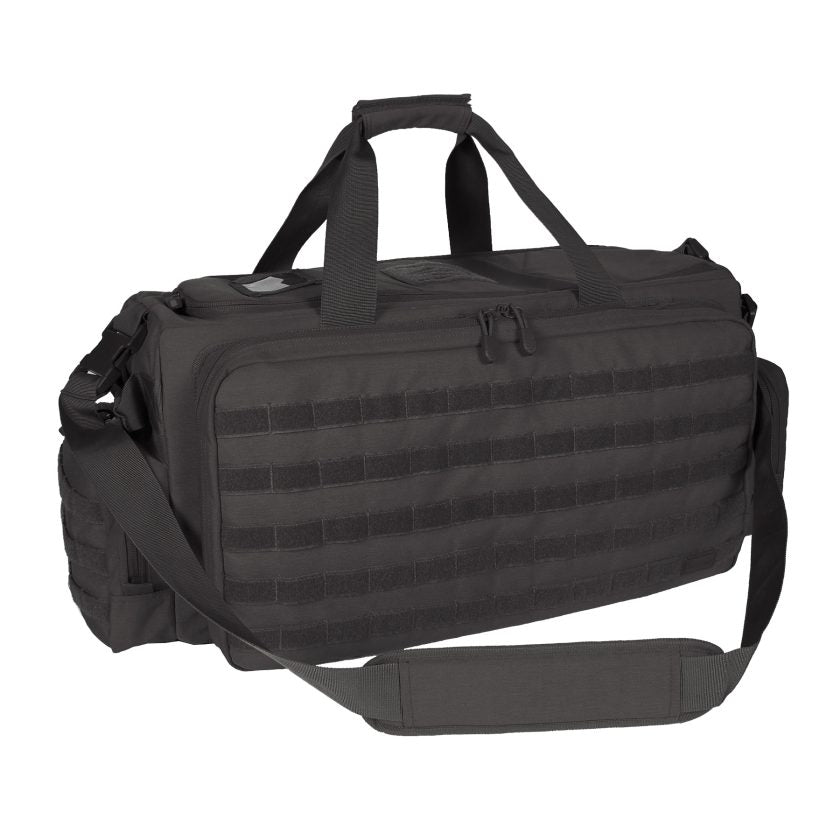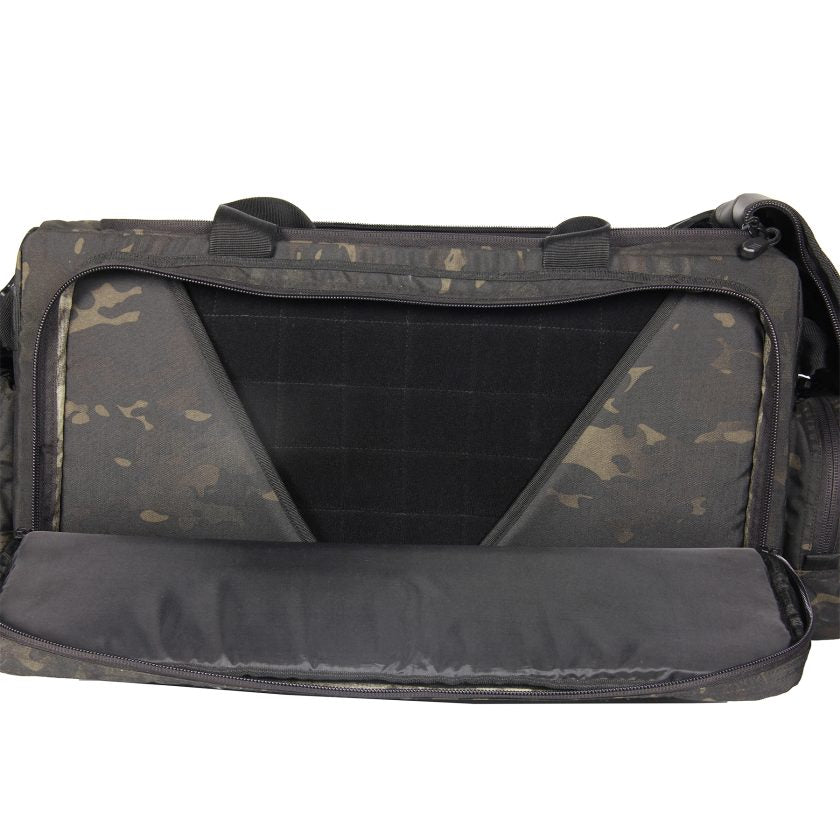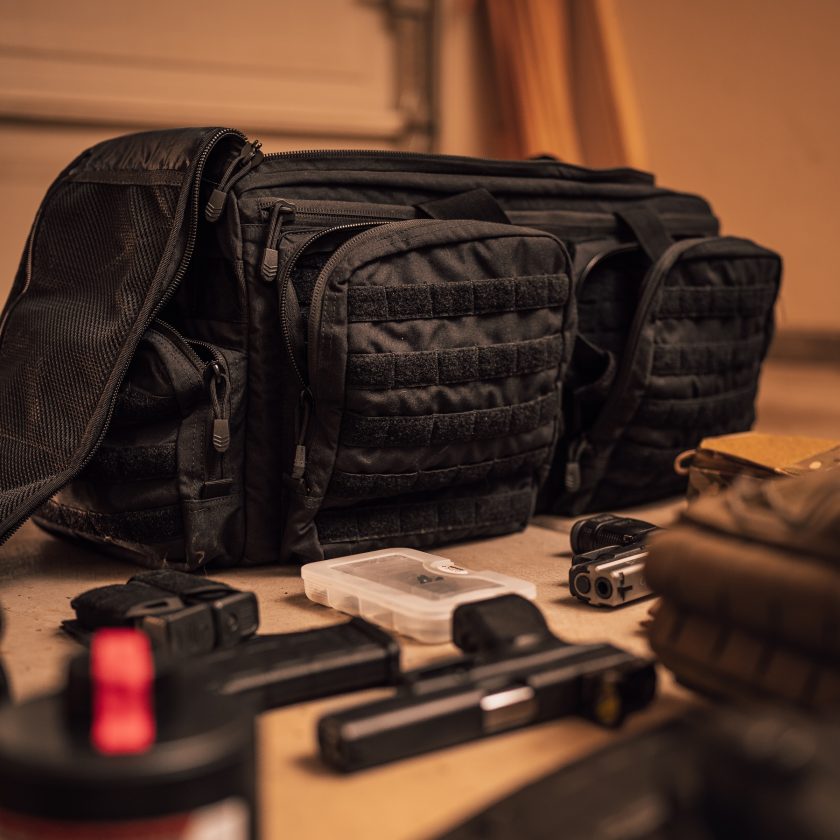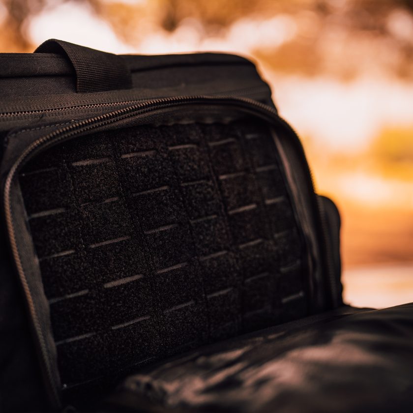 - Lockable zippered side compartment includes two padded holders for medium or large pistols