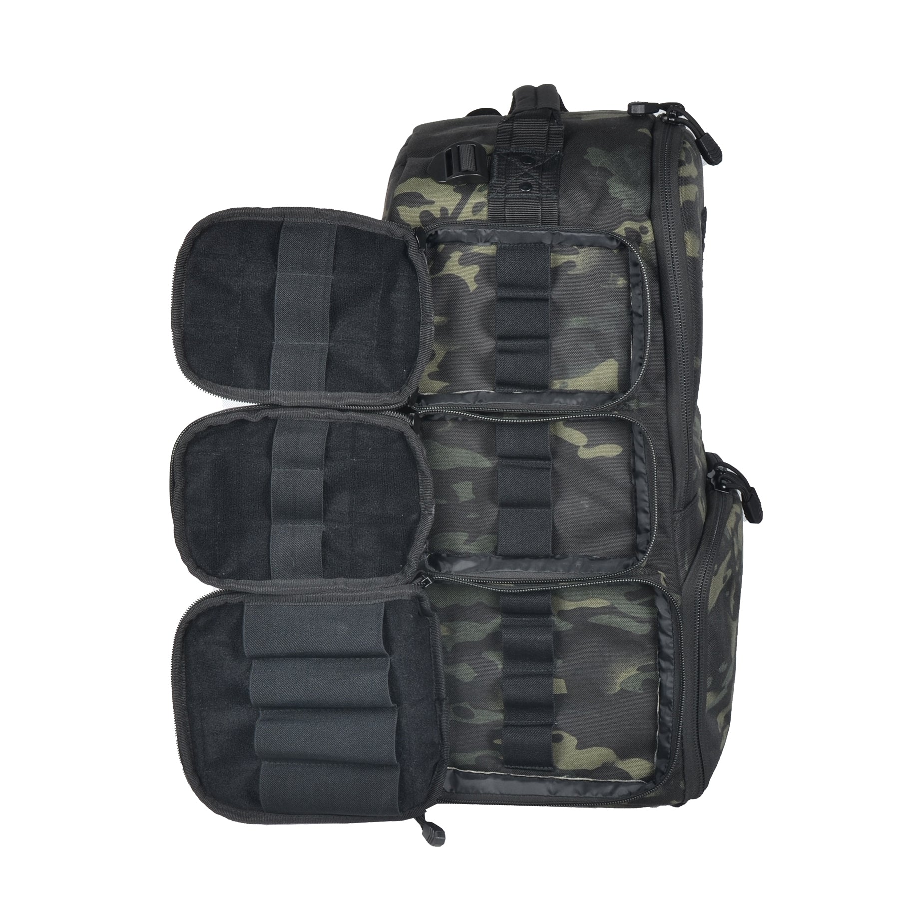 - Five individual pistol cases in bottom section (Included)